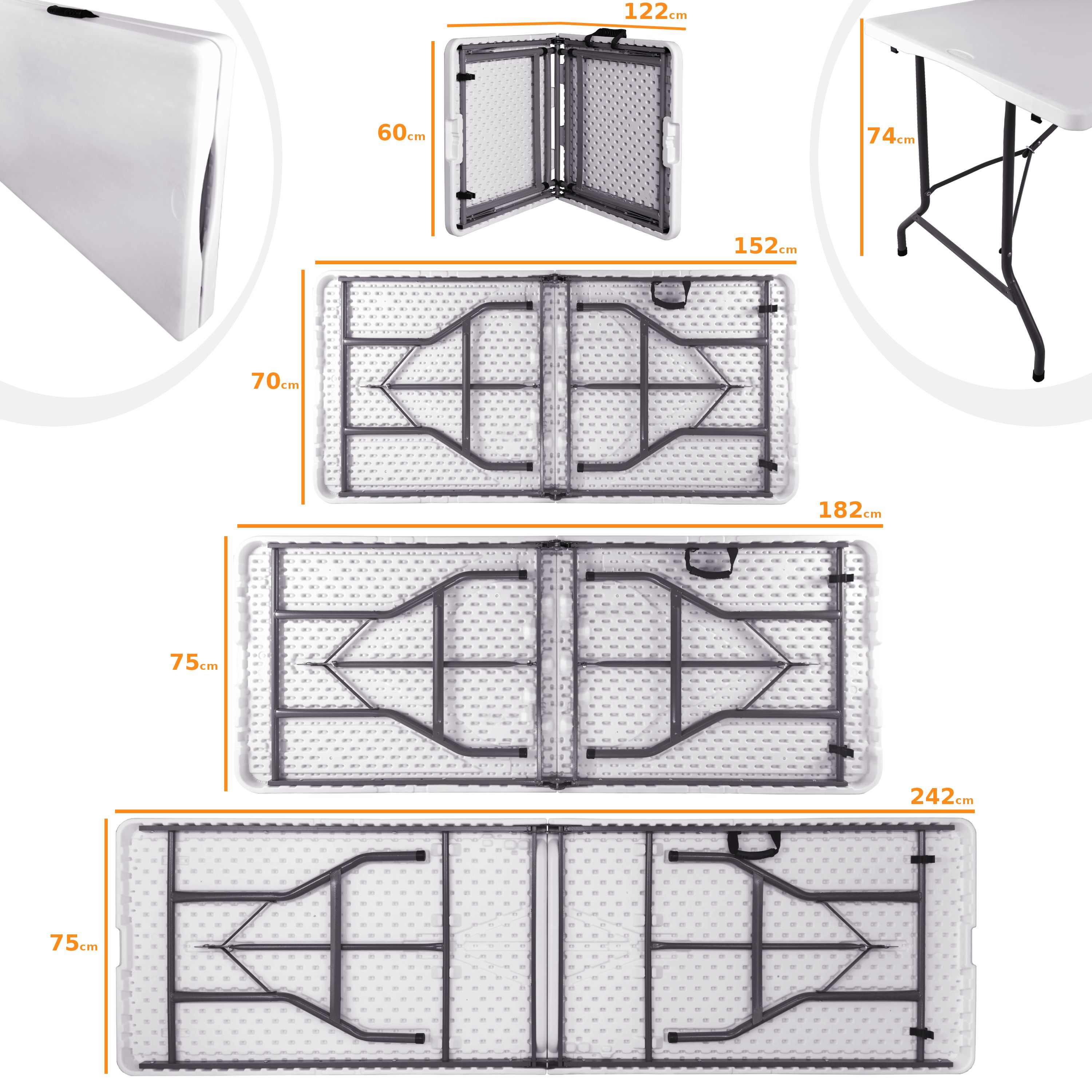 Jeśli chodzi o stoły składane, może się okazać, że opłaca się zainwestować w stoły lepszej jakości, które są nieco droższe. Stoły składane są skonstruowane tak, aby zapewnić trwałość i łatwość użytkowania. Nasze stoły mogą udźwignąć do 150 kg. Nasze stoły są 3 razy trwalsze niż inne stoły na rynku. W rzeczywistości podczas testów wykazano, że stoły wytrzymują kilka upadków z wysokości bez uszkodzeń.