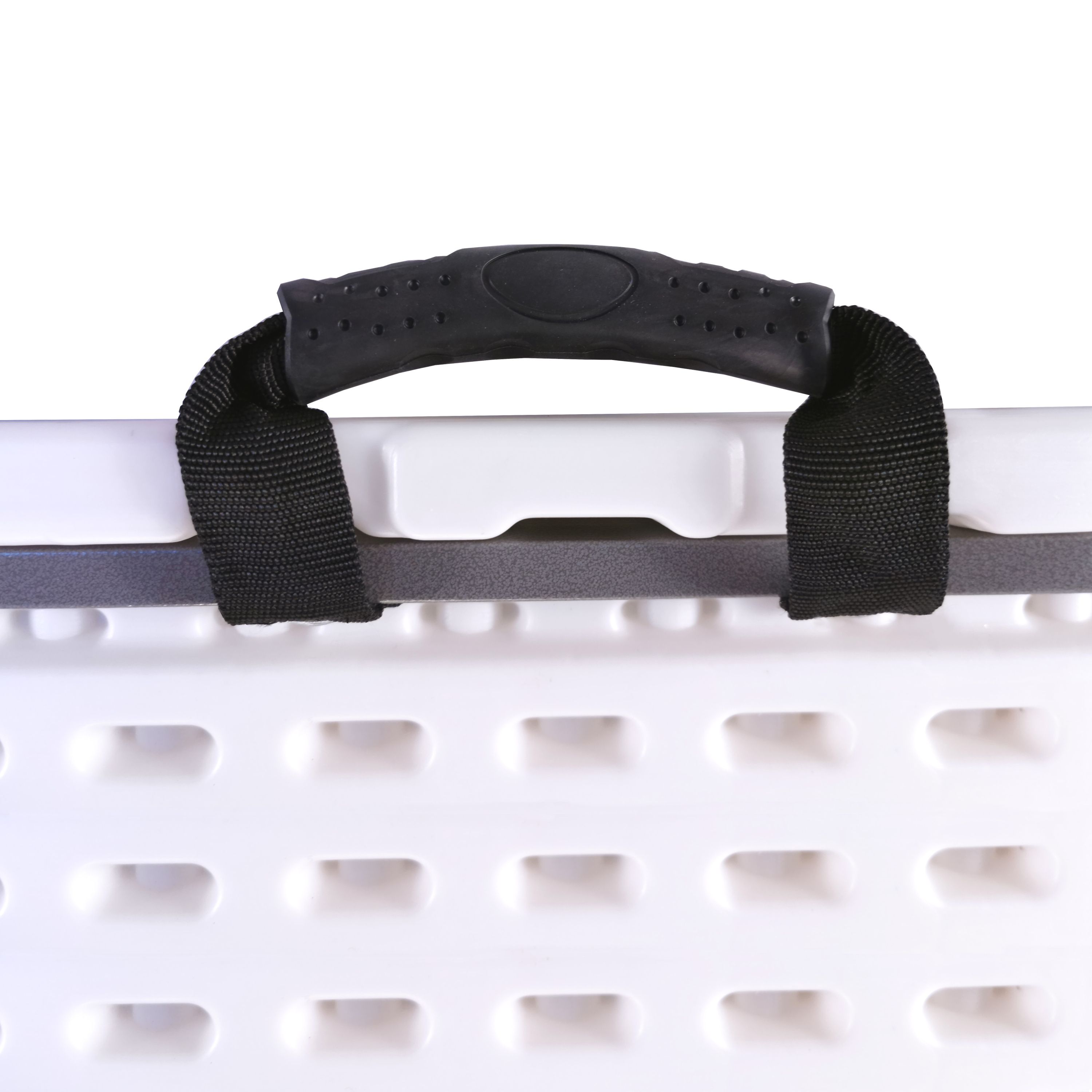 - Dzięki nośności 150 kg i wytrzymałości blatu z tworzywa sztucznego 15 mm oraz krawędzi wzmacniającej 38 mm stół składany może służyć jako w warsztacie lub na budowie.