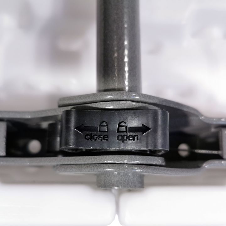 - Nogi są stalowe i po złożeniu składają się między plastikową konstrukcje.